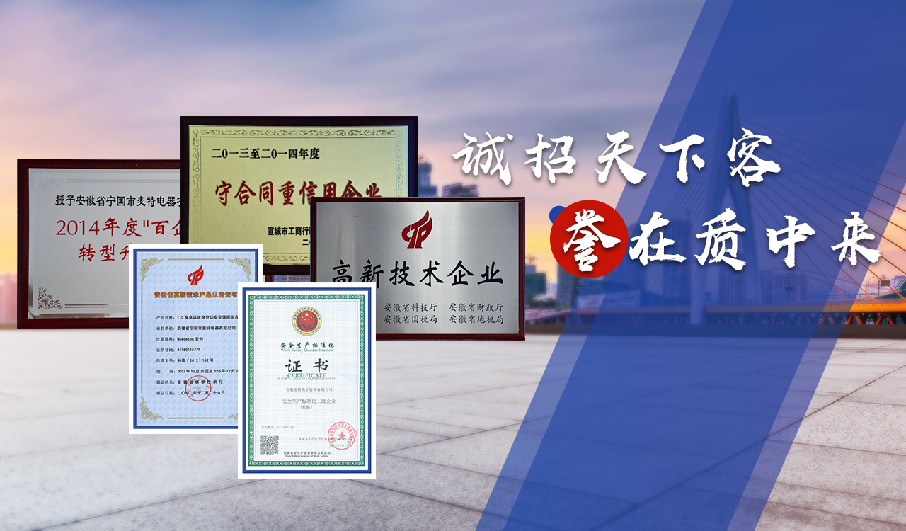 安徽麥特電子股份有限公司是專業研制電容器的高新技術企業。公司成立于2006年,注冊資金1000萬元,坐落于國家級寧國經濟技術開發(fā)區河瀝園區。公司致力于金屬化薄膜電容器。和微波爐用高壓電容器的研發(fā)、生產及銷售。
